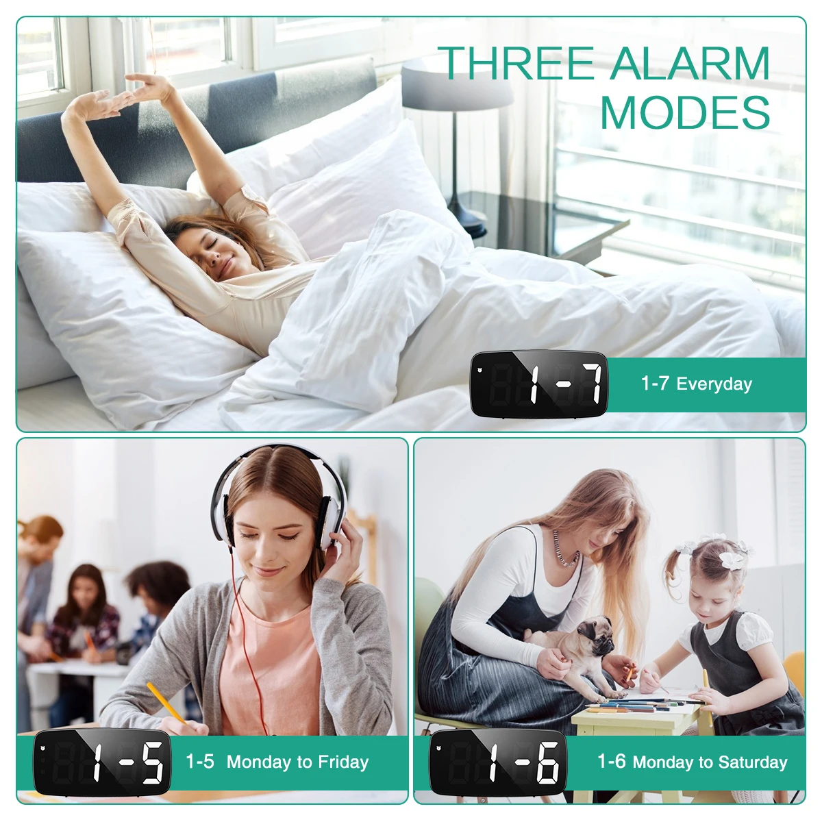 Multi-function Display: This upgraded version of the alarm clock has a variety of display functions: alarm clock display, date display, 12/24H time display, Temperature display, which can meet all your daily needs.