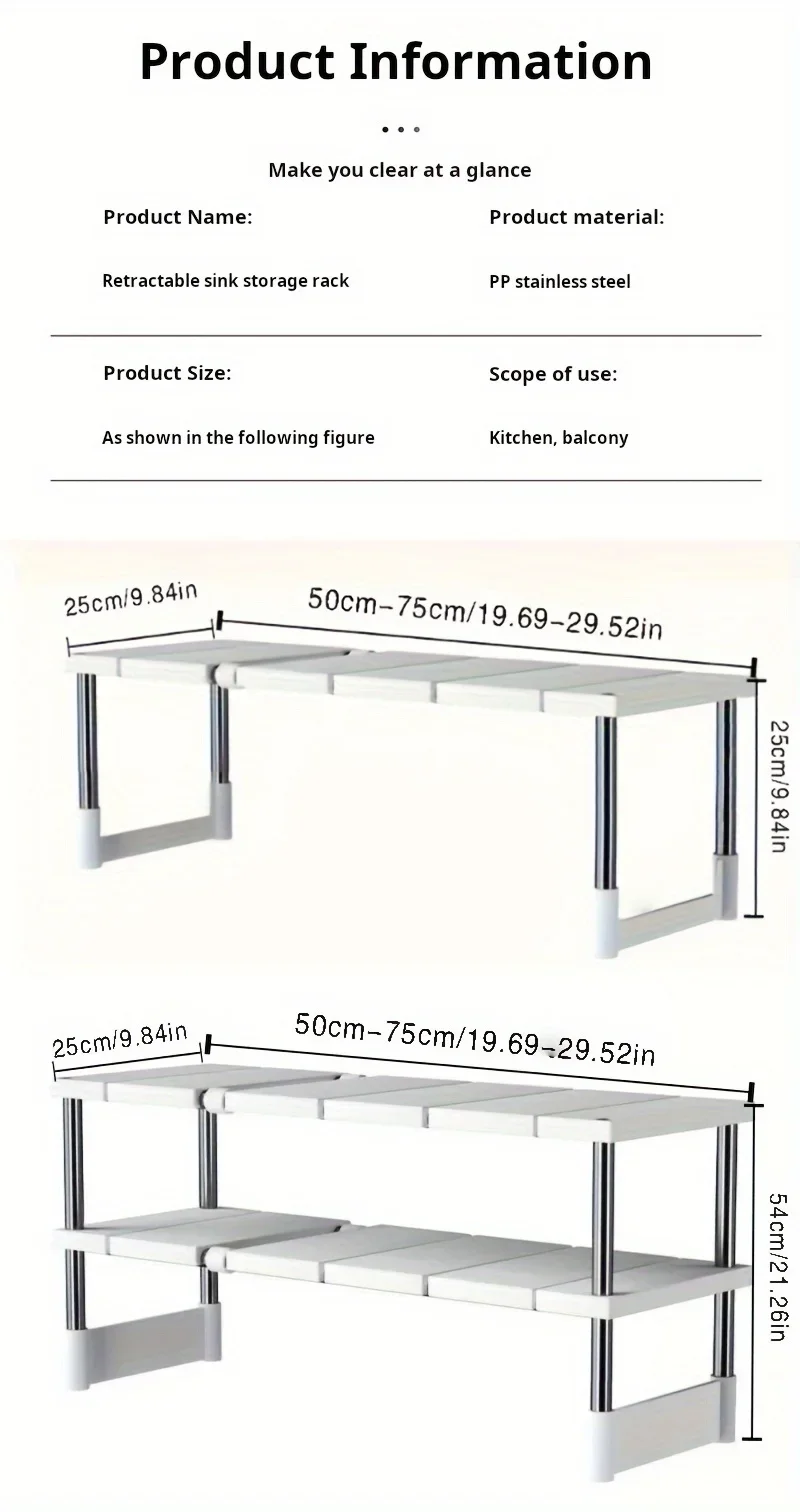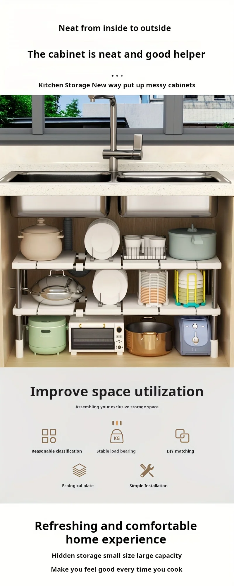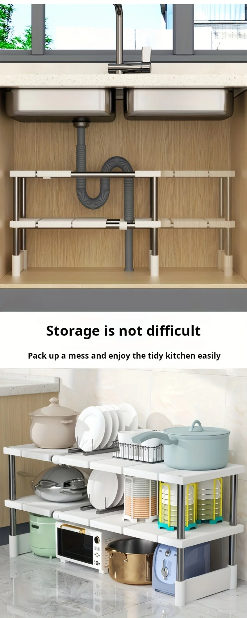 Adjustable Under Sink Storage Rack - Stainless Steel/Plastic, Expandable Kitchen & Bathroom Cabinet Organizer, Durable Space-Saving Multi-Layer Pot Holder, No Power Needed, Furniture Category