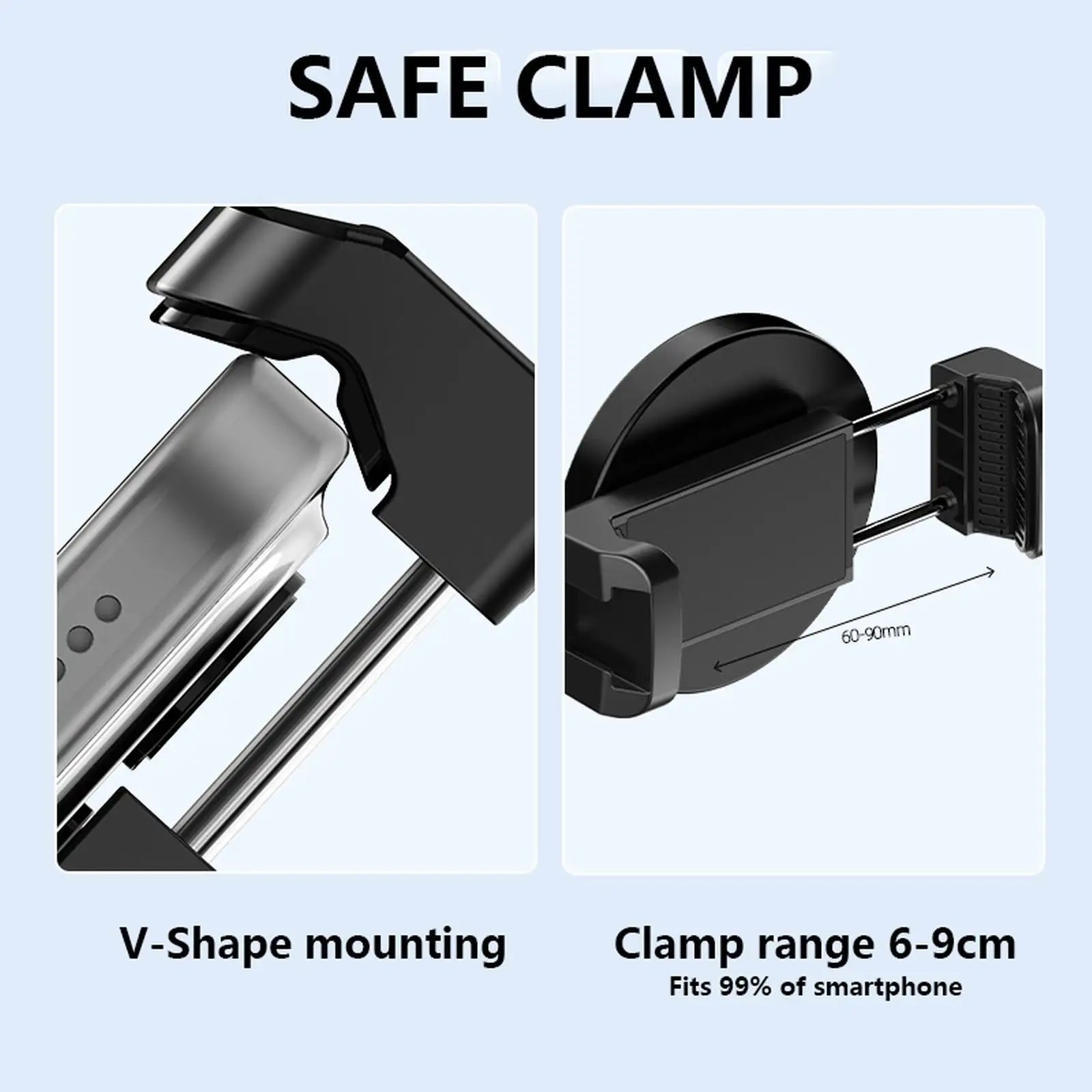 Wide Applicability: Designed to accommodate mobile phones ranging from 60mm to 88mm(2.36-3.46") in width, our Phone Mount Holder offers exceptional versatility. It can securely hold various models of smartphones, ensuring compatibility with a wide range of devices. No matter what type of phone you have, you can rely on this mount to provide a secure and reliable attachment.