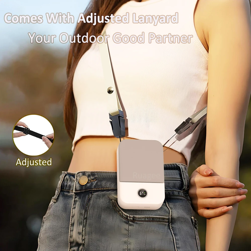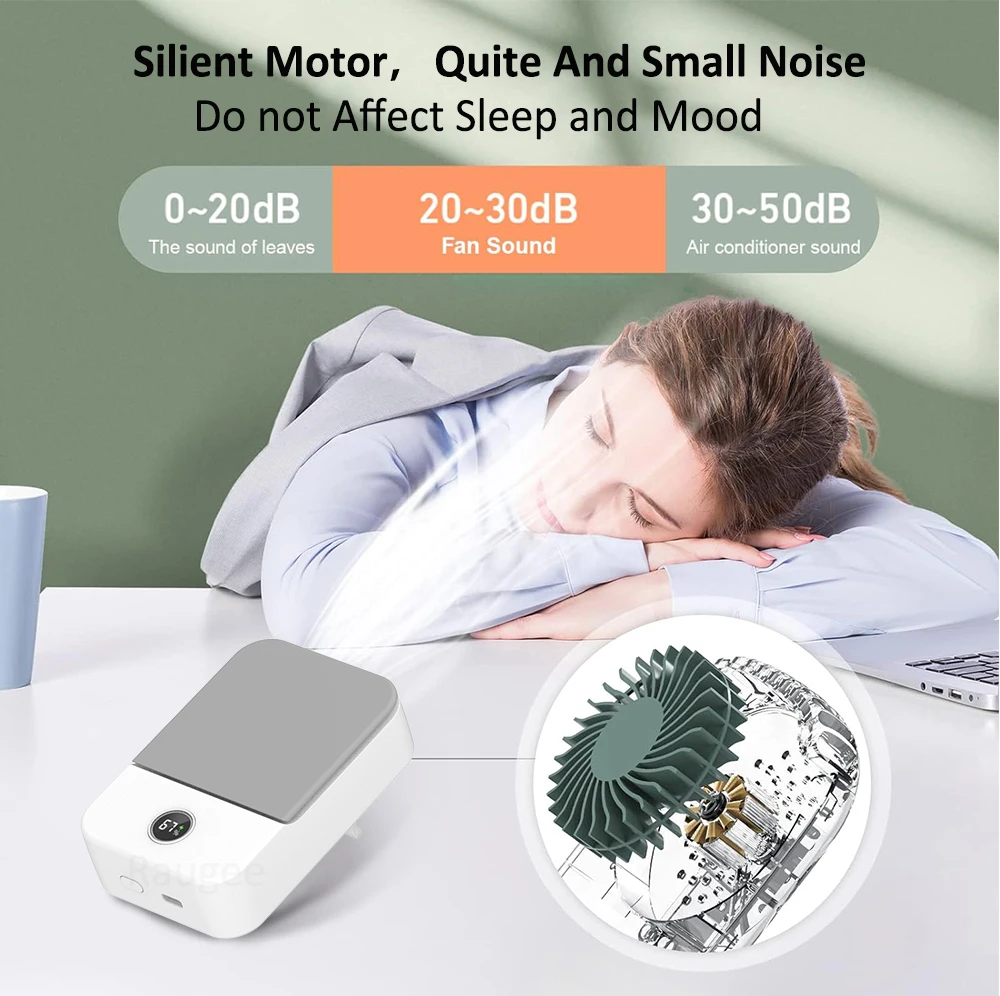 【Hands-free and Multifunctional Design】When used outdoors, you can wear the mini fan around your waist or hang it around your neck for a hands-free experience. Mini fan with Waist Clip, you can clip it around your waist to free your hands. Its lightweight design ensures comfort. Indoors, the personal fan can be placed on a table, thanks to its built-in stand.