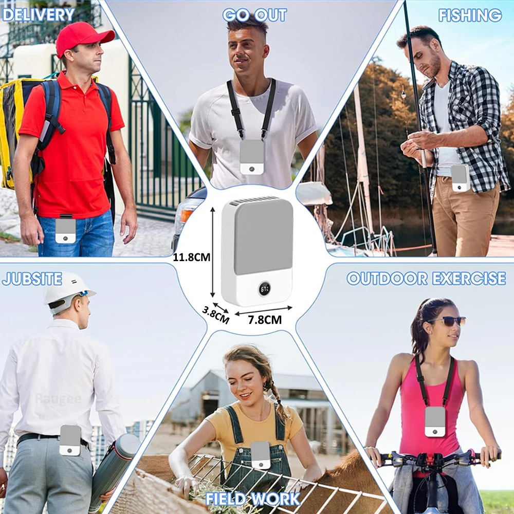 【Low Noise Design】With a distinctive air inlet and outlet design, portable neck fan rapidly delivers cool air with minimal noise disturbance. Enjoy a cooling experience without being bothered by unwanted sounds.