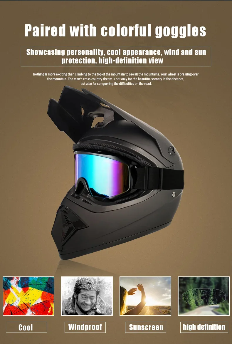 Motorcycle Full Face Helmet and Goggles Set - Off-Road Racing Gear for Mountain Biking and Road Cycling - Premium Safety and Per