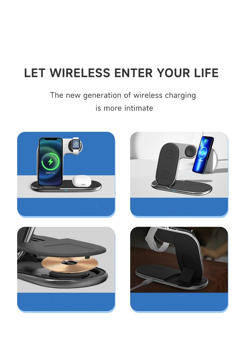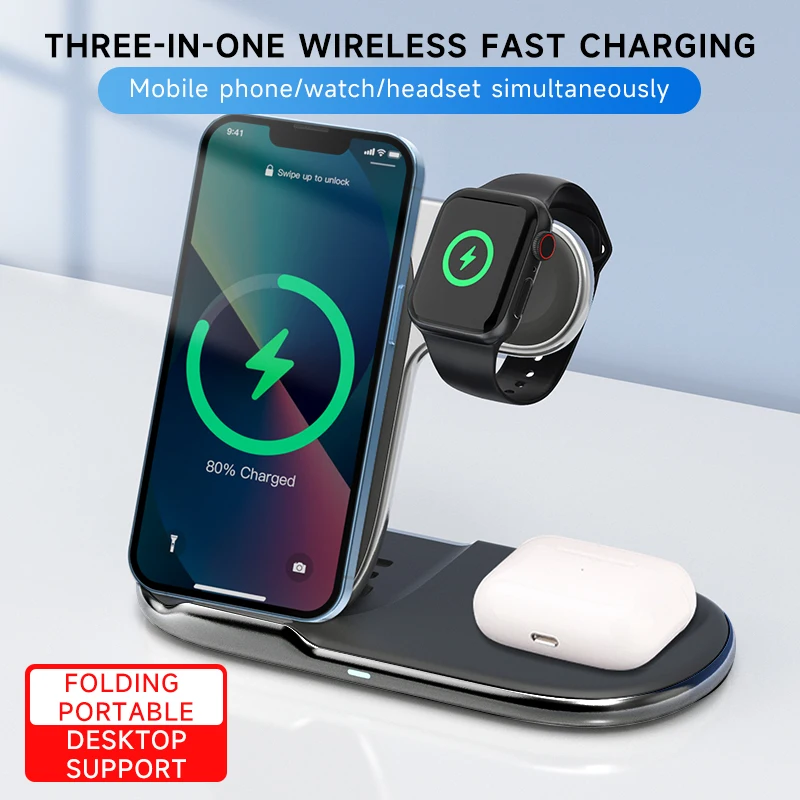 3-in-1 Foldable Wireless Charger Station 10W/15W Magnetic Charging for Phones & Devices