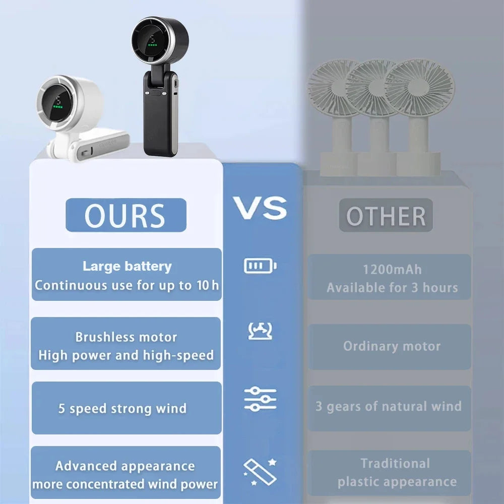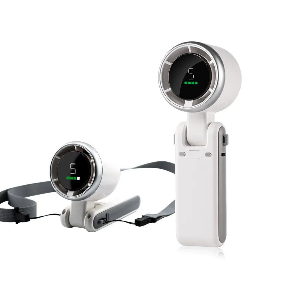 Portable Mini Handheld Fan - 5-Speed Turbo USB Rechargeable, Foldable Bladeless Pocket Fan with Large Battery for Outdoor/Travel