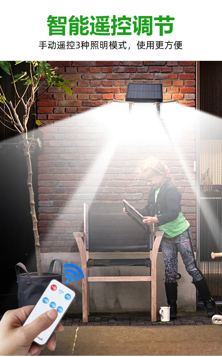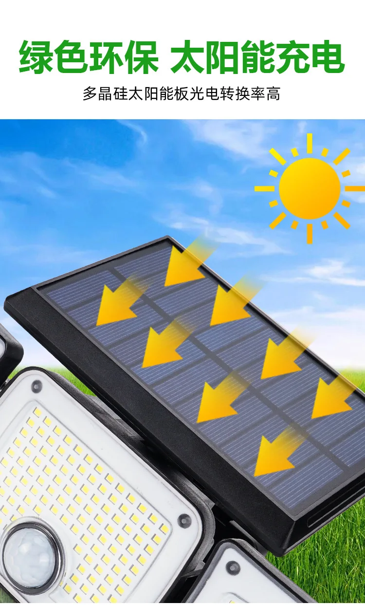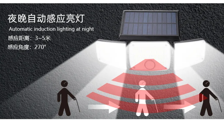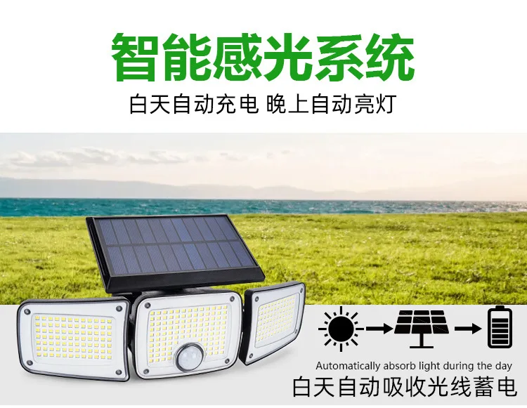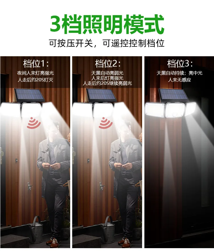 Solar Outdoor Wall Light Motion Sensor Waterproof 3-Mode Security Floodlight