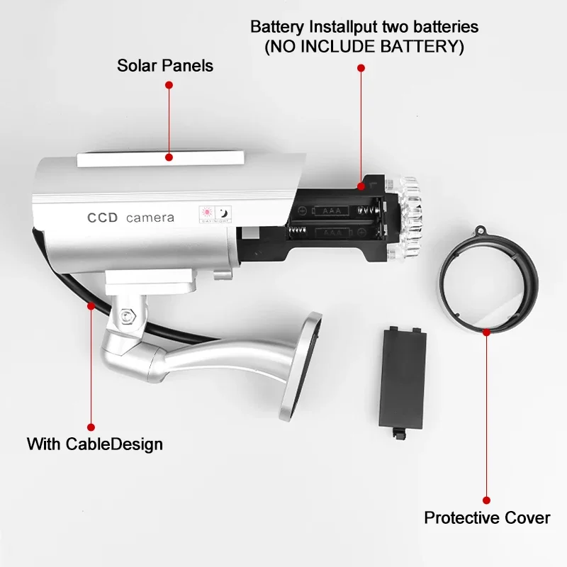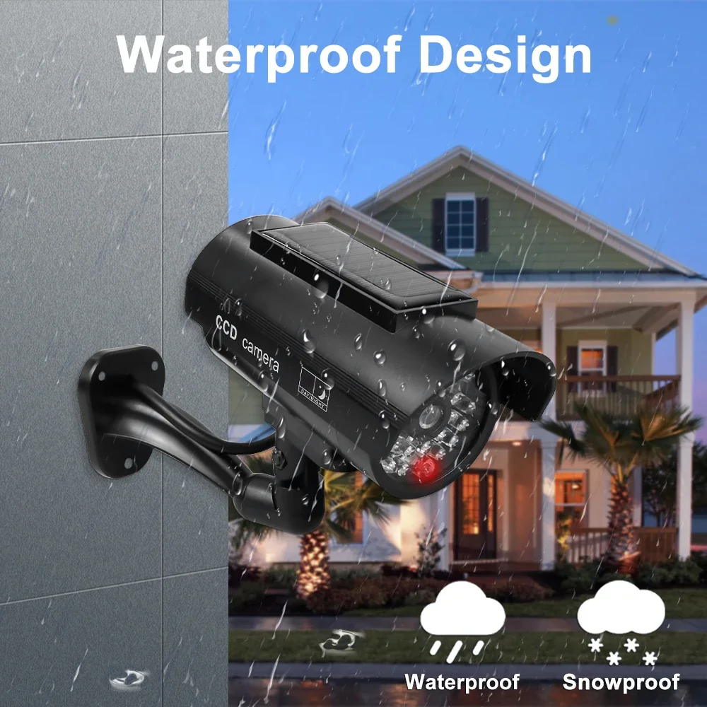 Solar-Powered Dummy Security Camera – Waterproof Outdoor Fake CCTV with Flashing LED